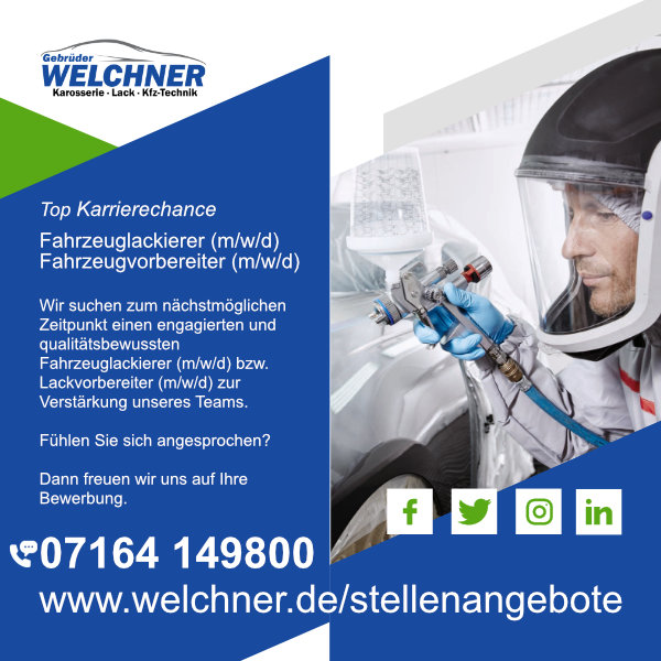Wir suchen zum nächstmöglichen Zeitpunkt einen engagierten und qualitätsbewussten Fahrzeuglackiere / Lackvorbereiter (m/w/d) zur Verstärkung unseres Teams. Werden Sie Teil eines dynamischen Unternehmens, das Wert auf Präzision, Innovation und nachhaltige Arbeitsprozesse legt.